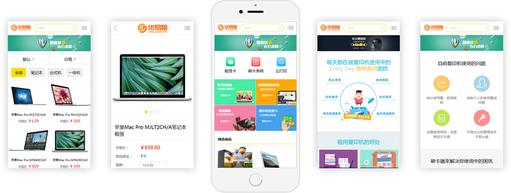 北京优易租网络技术有限公司是一家包括电脑出租、打印机出租、复印机租赁、投影仪设备出租等为主营业务的租赁公司,为大中型企业、中小型企业、初型创企业、展会、活动客户提供专业复印机出租和电脑出租服务,为企业节省资金投入,节约企业资产管理成本和人力成本,实现企业轻资产运营。 优易租办公设备租赁性价比高,首月免租金,按月付租金,随租随还,全程保修,提供配置、运输、维修维护一条龙服务,减少了企业对办公设备的一次性支出及资产处置的成本,提高了企业抵抗经营风险能力...